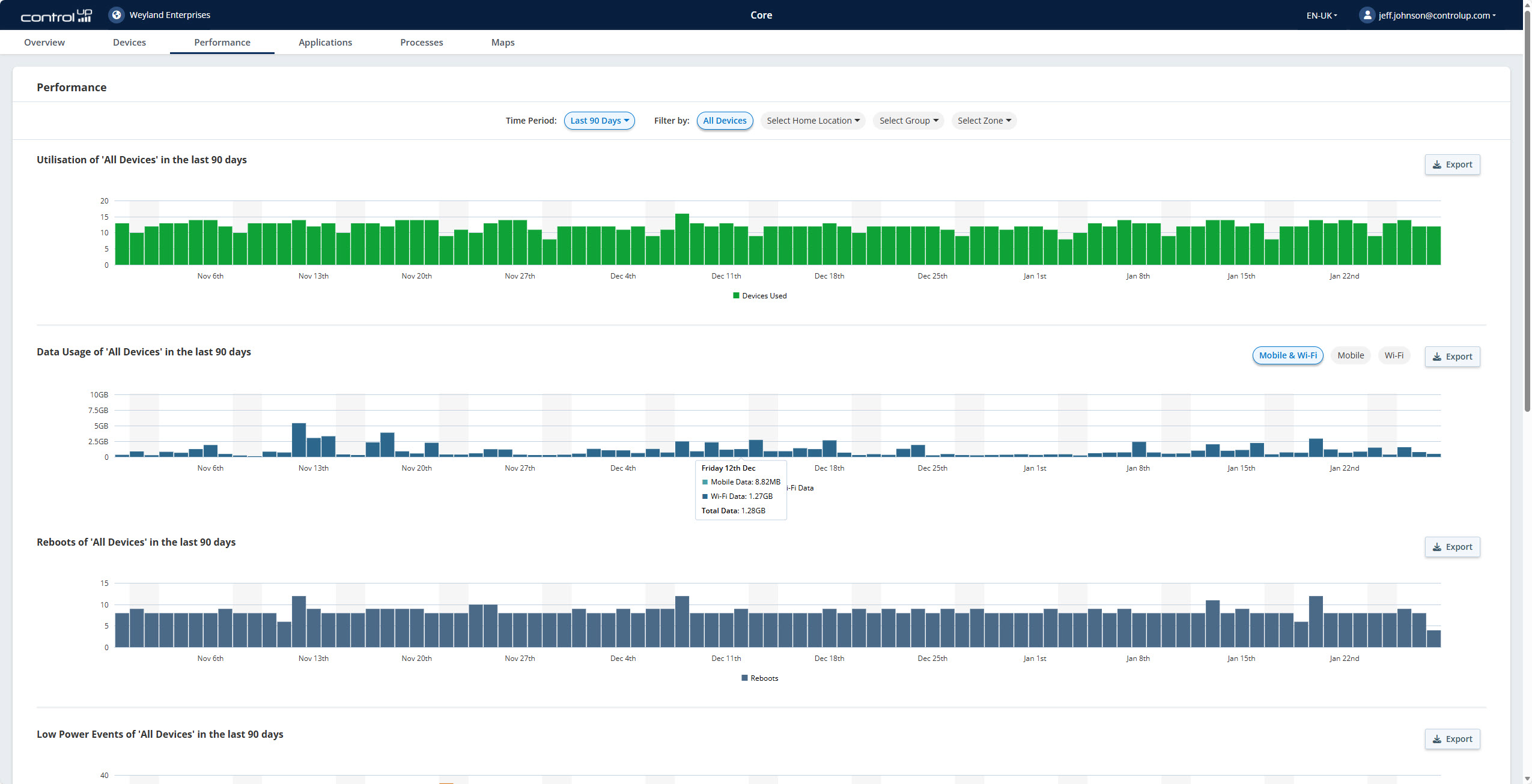 • Spot devices that exceed cellular data limits and find the root cause